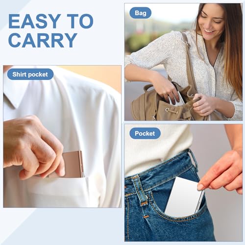 • Ample Quantity Package: come with 3 pieces of metal credit card holders, each holder has 6 slots, which are small but practical, and they are in silver, rose gold, mirror silver colors, enough to use and replace in your daily life