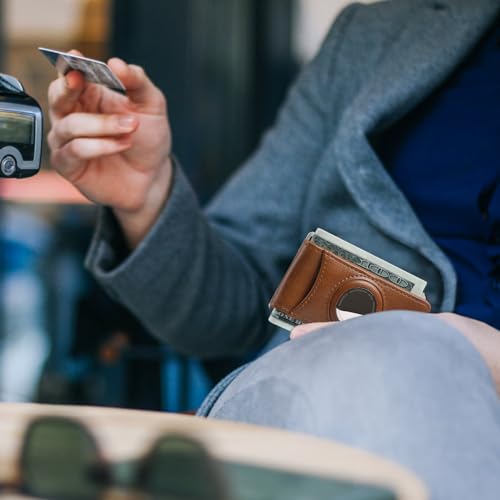 HOT ! Magnetic Money Clip with airTag Holder credit card elastic band Holds to Cash and Cards (Brown)