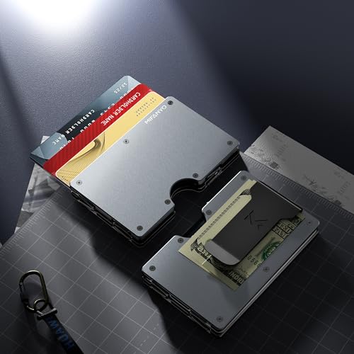 Minimalist Aluminum Wallet for Men, Slim Front Pocket Metal Credit Card Holder with Money Clip, Small RFID Blocking 6