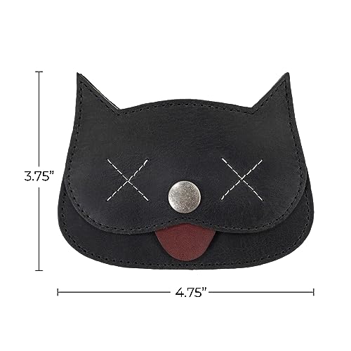 Hide & Drink, Cat-Shaped Wallet, Coin Pouch, Money Holder, Travel Accessory, Full Grain Leather, Handmade, Cartoon Black 1