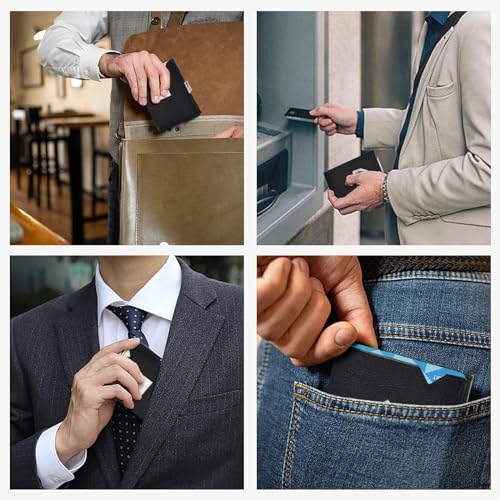 • 【RFID Safeguard】Advanced RFID blocking technology. Wallet embedded can block and interfere with commonly used 13.56mhz or higher shielded cards, which can prevent credit/debit/transportation cards etc. from being scanned by unknown devices, providing security for your belongings and data. Suitable for daily use in your pocket or bag, can be used to store ID card, work permit, transportation card, etc.