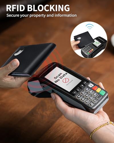 • ANTI-THEFT PROTECTION — Our RFID wallets for AirTag are equipped with advanced RFID SECURE Technology, made of a unique metal composite, engineered specifically to block 13.56 MHz or higher RFID signals and protect against data theft by RFID and NFC scanners.