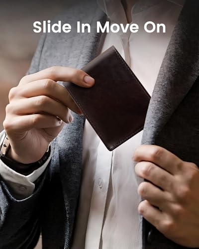 Genuine Leather Wallet for Men - Top Grain & RFID Blocking - Men's Bifold Vintage Slim Front Pocket Wallets, ID Window 2 Cash Slots 10+ Card Holder with Minimalist Coin Pocket 7