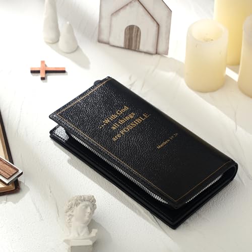 • Religious Elegance: our bible book wallet, well marries style and spirituality, it features an impressive black color lined with gold printing on the surface, this elegant design portrays a retro style that eloquently manifests your devotion to faith and love for Christianity, unleash your elegant sense while upholding your Christian faith