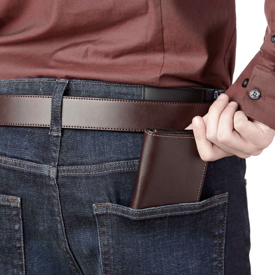 Mens Trifold Wallet Case, 4 Credit Card Holder Slots and ID Window, Full Grain Bridle Genuine Leather, Made in USA, Brown 4