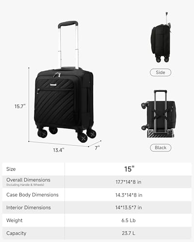 • Fits Carry-on: With durable 8-spinner wheels, this lightweight underseat carry-on luggage glides smoothly and quietly, making navigation through crowded airports and train platforms a breeze without stressing your arms.