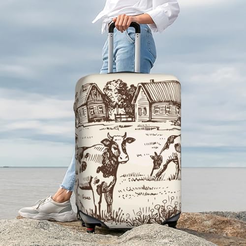 Cows On The Farm Print Luggage Cover For Suitcase,Washable Elastic Travel Suitcase Protector With Zipper Closure And Bottom Buckle – Fits 18-32" Luggage-Large 7