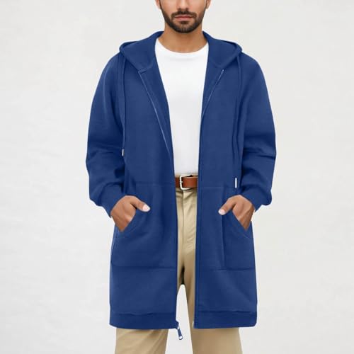 HOT ! Long Hoodies for Men Zip Up Flannel Fleece Oversized Tunic Full Length Sweatshirts Jackets Coats with Pockets 2025
