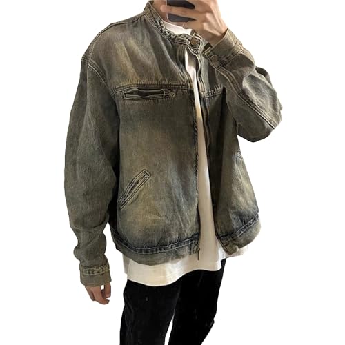 More information about Men's Banded Collar Denim Jacket Distressed Moto Button Down Denim Shirt Full Zip Long Sleeve Winter Jacket