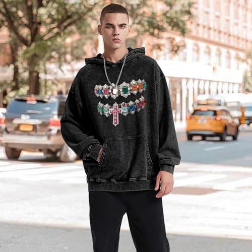 • Design:Washed graphic hoodies y2k have a loose cut,not only oversized fit but also casual vintage.Vintage hoodies for men have a gemstone pattern.The stones form a cross pattern to make the streetwear hoodie more eye-catching.Print design show a unlike feel to grunge hoodie.Round neck, long sleeve, acid wash vintage.When you wear this y2k graphic hoodie on the street, you are a fashion trendsetter