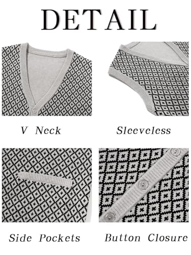 Runcati Mens Sleeveless Sweater Vest V Neck Button Down Cardigan Sweaters Knitted Argyle Vest with Pocket 4