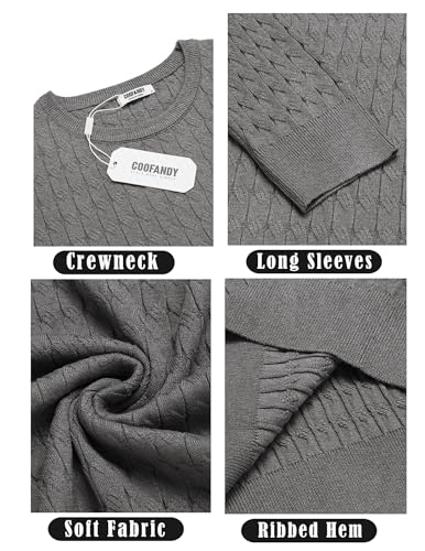 HOT ! COOFANDY Men's Crewneck Cable Knit Sweaters Long Sleeve Lightweight Casual Twist Patterned Pullover Sweater B-Grey