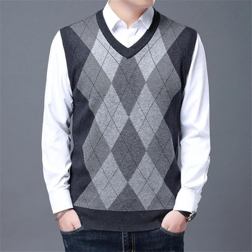 Men's Wool Vest Winter Colorblock Sleeveless Sweater V-Neck Thickened Warm Knitted Vest 3