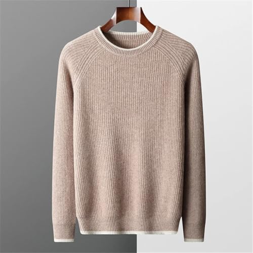 Men's Merino Wool O Neck Loose and Thick Pullover Color Blocked Cashmere Sweater Business Top 5