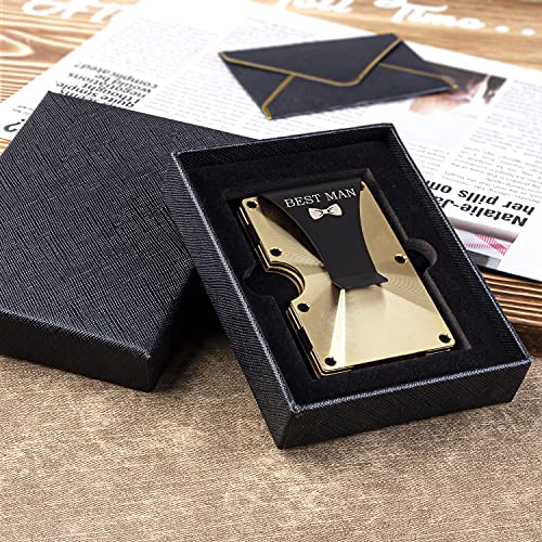awofer Best Man Gifts Set Personalized Custom Wallets for Best Man Aluminum Metal Wallet with Money Clip Engraved Wallet Gold Groomsmen Gifts Card Holder on Wedding 5