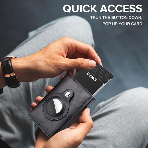 HOT ! AirTag Wallet for Men: Pop Up Bank Credit Card Holder for Apple AirTag, Magnetic Smart Wallet With Airtag Holder, RFID Blocking, 9 Cards Capacitiy | ID Window | Cash Slot | (Black)