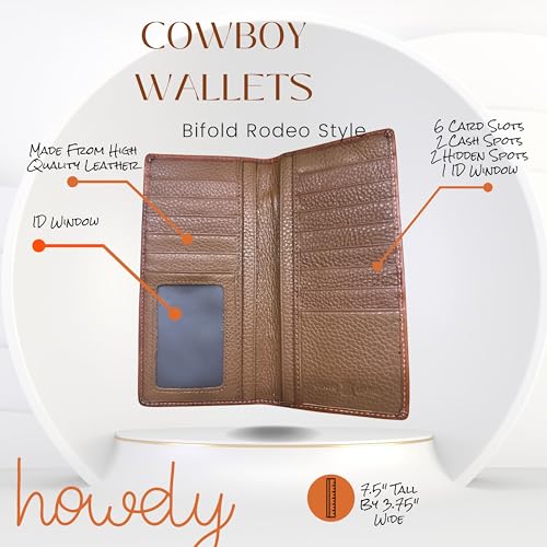 • Long Rodeo Bifold Format Roomy design includes slots for cash, ID, cards, and a checkbook — ideal for daily carry or formal occasions.