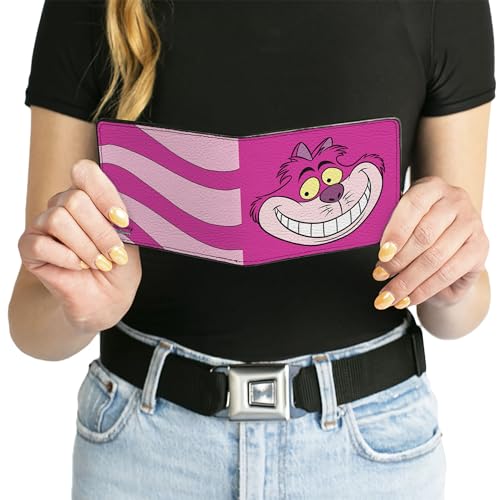 Buckle-Down Men's Disney Wallet, Bifold, Cheshire Cat Face Stripes Pinks, Vegan Leather, Multicolor, Standard Size 5