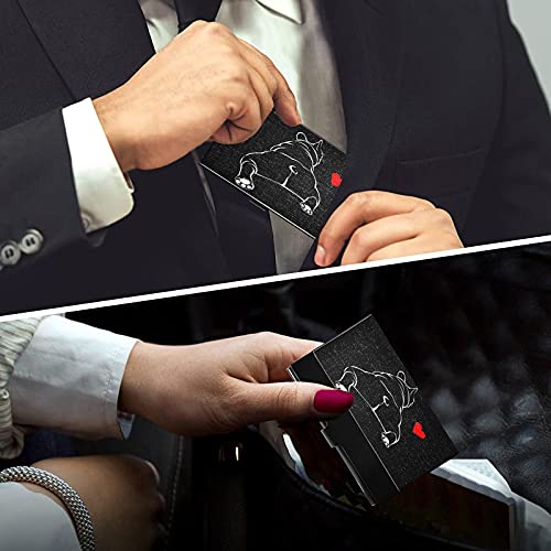 ALAZA Bulldog Pupppy Dog French Business Card Holder Leather, Stainless Steel Slim Pocket Wallet Business Card Carrier Case Holder 4