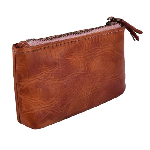 HOT ! Veg-Tanned Leather Coin Purse Wallet, Zipper Coin Organizer, Mini Change Holder for Men & Women (Brown)