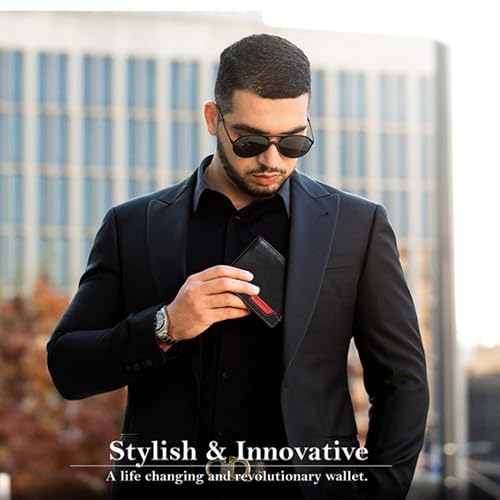 Genuine Leather Made Bi-Fold Casual, Formal, Party, Travel RFID Protected Wallet for Men-Black, Black And Red, Carry On 20 Inch, Contemporary 5