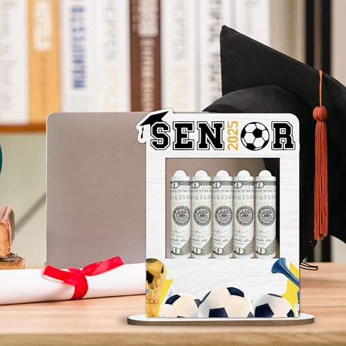 HOT ! 2025 Graduation Gift Money Holder Frame, Class of 2025 Grad Banknote Holder, Football Wooden Money Cash Personalized Football Highschool Gifts for Her Him, Graduation Party Decoration-A07