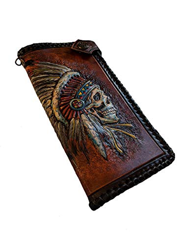 More information about Indian Chief Skull, Native American Patriotic Card Holder, Apache, Headdress, Red Man, Men's 3D Genuine Leather Long Wallet, Carved wallet, Tooled wallet, Handmade Custom wallet, Personalized wallet