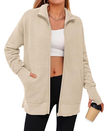 • Material: Crafted from medium-weight knit fabric with great drape, our zipper cardigan sweaters for women offer exceptional softness, durability, and a comfortable stretch. The ribbed knit fabric provides a cozy yet stylish look, perfect for womens fall fashion 2025.