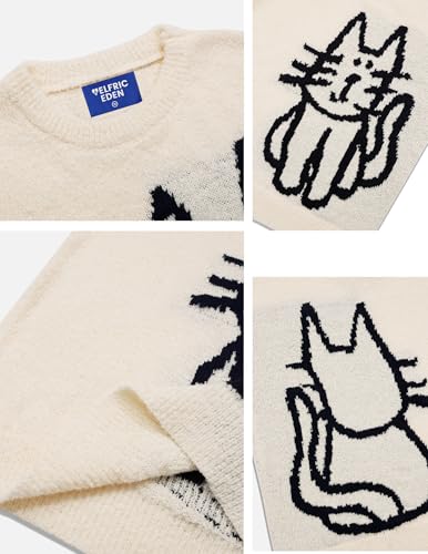 HOT ! Aelfric Eden Women's Pullover Sweater Hand Drawn Cat Graphic Printed Oversized Sweater Fall Winter Fashion Couple Tops