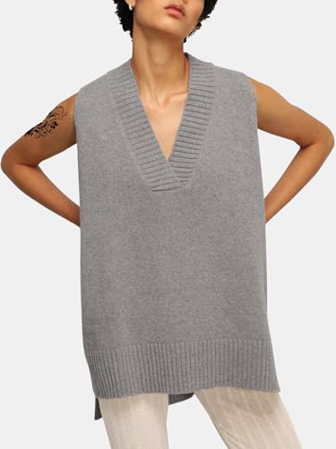 EXLURA Womens Oversized Sweater Vest Knit V Neck Tunic Casual Sleeveless Long Pullover Tank Tops Fall Winter Trendy 2025 4
