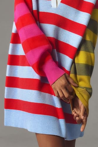• Features:Striped sweater mini dress,patchwork design,polo v-neck,lapel collar,pullover style,long lantern sleeve,ribbed knit,loose fit,above the knee,varsity style,oversized sweater dresses for women,stylish and comfortable