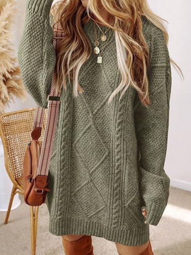 • Features: Fall sweater dresses for women trendy, design with classic crew neck, cable knit sweater, long sleeve, above knee length, ribbed knit, loose fit, solid color, casual mini short sweater dress, slouchy oversized tunic sweaters for women
