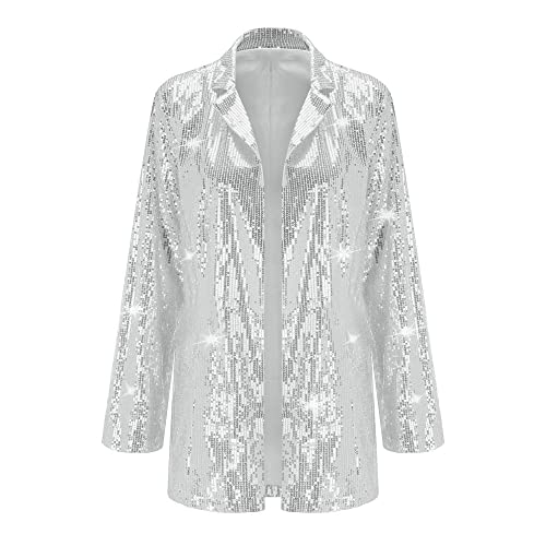Women's Shiny Sequin Open Front Blazer Coat Lapel Long Sleeve Cardigan Jacket 6