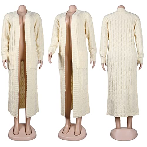 NRTHYE Women's Long Sleeve Open Front Cable Knit Long Cardigan Sweater with Pockets Loose Sweater Outwear Coats 4