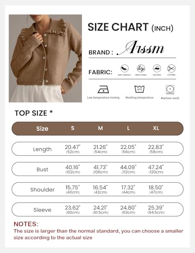 More information about Arssm Womens Ruffle Collar Cardigan Cropped Button Down Open Front Sweaters Knitted Long Sleeve Fall 2025 Elegant Outwear