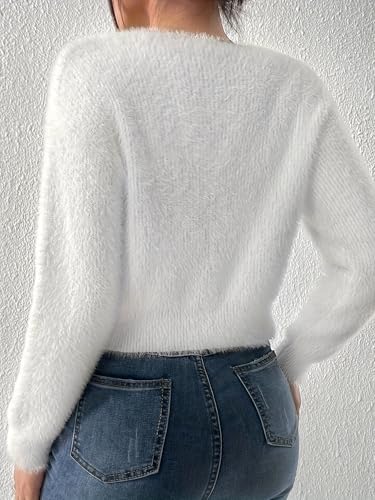 More information about Womens Cute Rhinestone Bow Cardigan Sexy V Neck Long Sleeve Fuzzy Sweater Casual Open Front Knit Crop Top