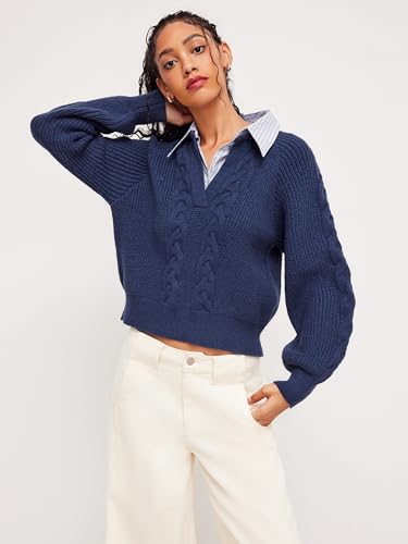 More information about CIDER Cable Knit Sweater Women Crew Neck Two Tone Long Sleeve Knit Pullover Top Fashion Winter Sweaters