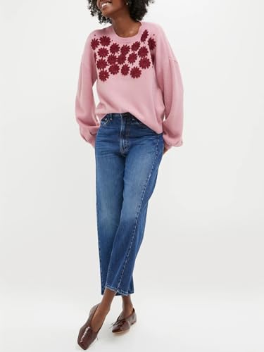 Women Embroidered Floral Sweaters Knitted Crewneck Long Sleeve Pullover Casual Loose Fall Tops 1