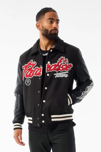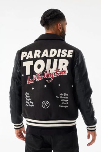 • Stylish Varsity Jacket: This Paradise Tour jacket from Jordan Craig features a sleek black design with embroidered graphics for a fashionable look.