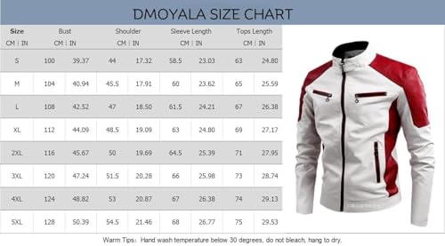• Size Information: This leather jacket is slim fitting. Many sizes from S-5XL for you to choose, if you want a more comfortable or loose fitting experience, please choose a larger size. Before ordering, please carefully check the size chart in the product image(not Amazon size chart) and choose the appropriate size based on the chest and shoulders.
