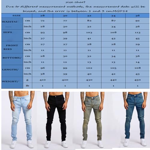 • Design: Men's slim fit jeans stretch feature a straight fit, mid-rise, skinny, lightly washed, classic design for a trendy look. Streetwear skinny denim jeans men highlight your personality and fashion.