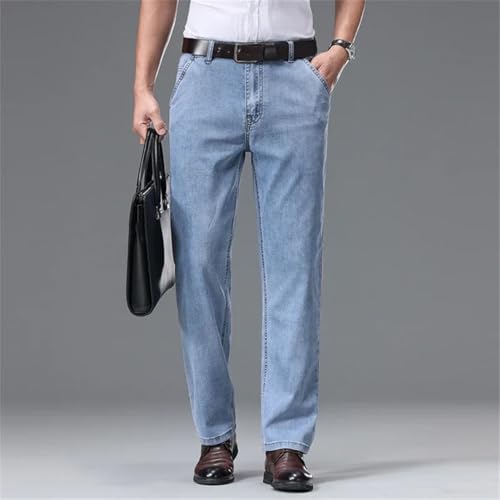 HOT ! Men's Thin Vintage Jeans Straight Trousers Slim Elastic Breathable Male Clothing Denim Trousers