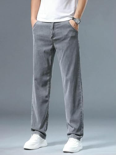 More information about Summer Thin Men's Loose Straight Jeans Lyocell Soft Drape Business Casual Trousers Classic Ice Silk Denim Pants
