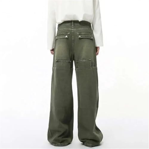 HOT ! Men's Solid Color Denim Pants Patchwork Vintage Metal Trousers Wide Leg Tide Jeans