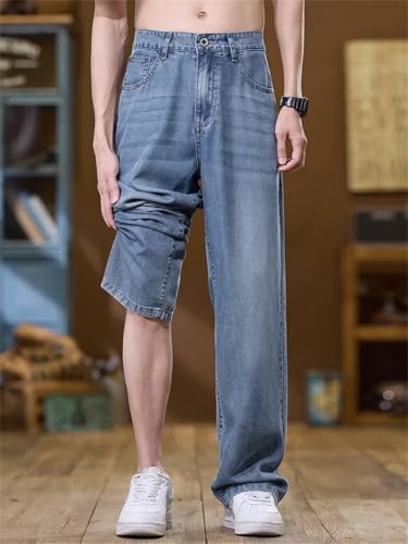 More information about Men Lyocell Thin Jeans Soft Wide Trousers Straight Comfortable Loose Denim Pants Streetwear