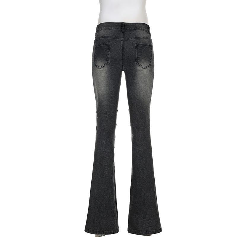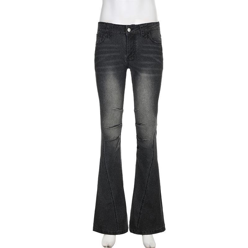 HOT ! Low Waist Washed Slim-Fit Boot-Cut Jeans