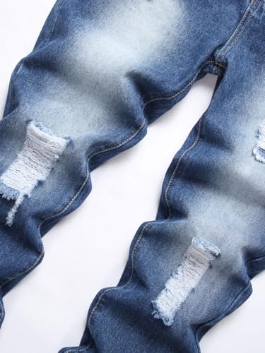 Mens Jeans Slim Fit Stretchy Straight Leg Trendy Summer Light Wash Skinny Ripped Jeans 7