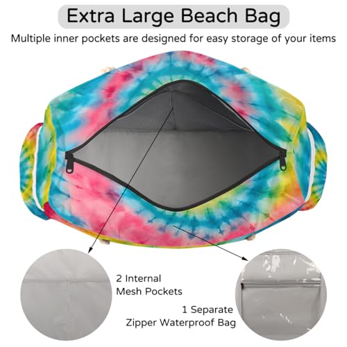 Beach Bags for Women Waterproof Sandproof Large Beach Tote Bag with Zipper Swim Pool Bag for Travel Outdoor 4