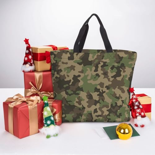 HOT ! Large Capacity Shoulder Bag with Zipper,Reusable Grocery Green camo Print Tote Bag for Shopping