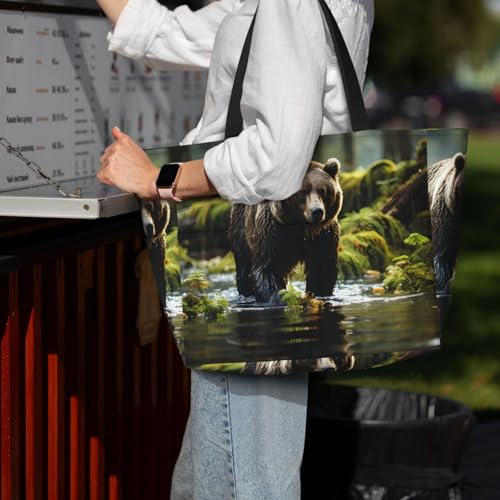 HOT ! QWVBNbrown bear pounce Beach travel bag, lightweight and reusable, suitable for family trips, gym and outdoor adventures.